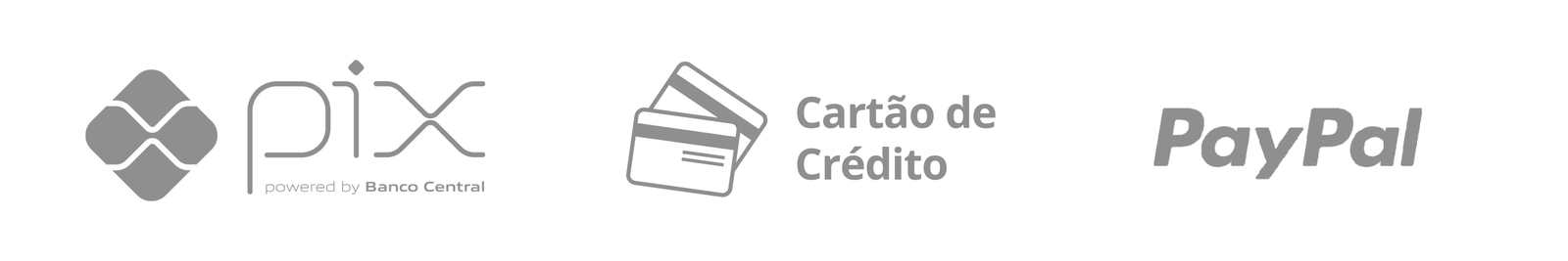 Trabalhamos com as seguintes formas de pagamento: Cartão de Crédito, Paypal ou Pix.